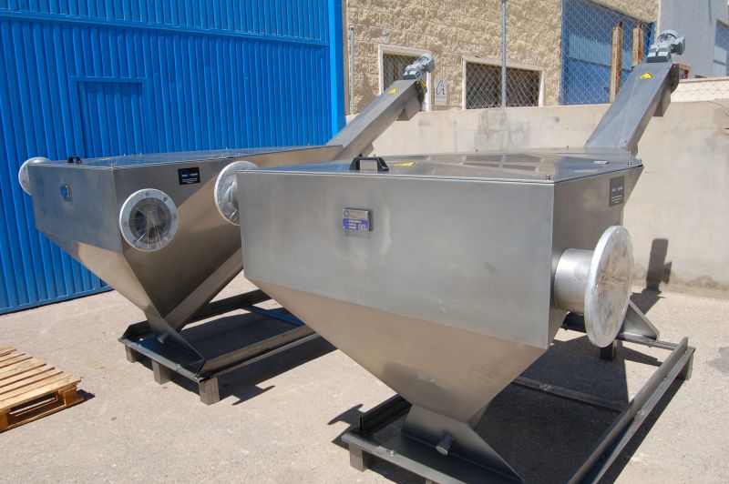 El equipo está compuesto por las siguientes partes: tolva de decantación, grupo de accionamiento, zona de transporte, espira sinfín y las bocas de entrada y salida de fluidos y sólidos.