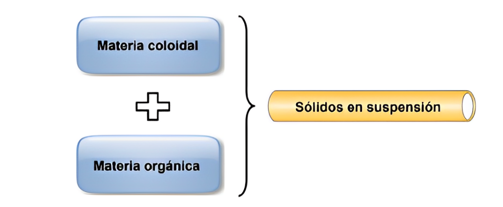 Son todas aquellas sustancias insolubles que se encuentran en el agua. También, son el residuo que queda después de evaporar una muestra de agua previamente filtrada a través de un elemento de fibra de vidrio con abertura de 1.5 micras. El agua se evapora y el residuo se lleva hasta 180°C. El resultado se reporta en mg/L.